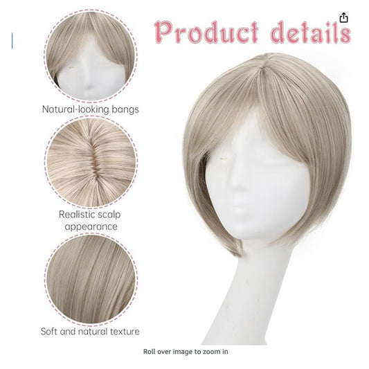 Hair Toppers for Women with Bangs Short Bob Synthetic Hair Pieces for Thinning H