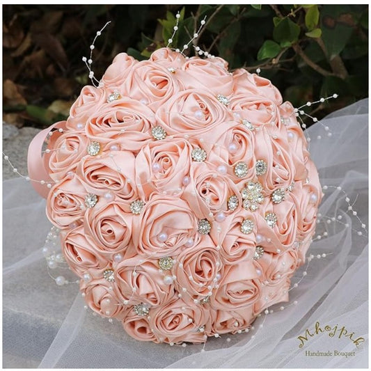 Versatile 8.7" Peach Pink Brooch Bouquet for Weddings & Special Occasions