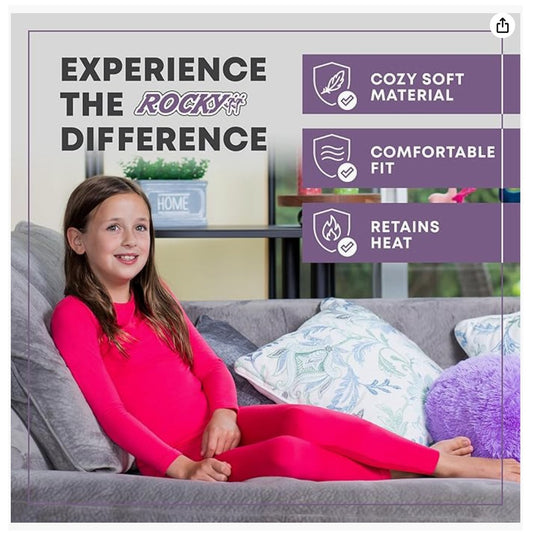 Rocky Thermal Underwear for Kids, Girls Thermals Top and Bottom Set, Long Johns