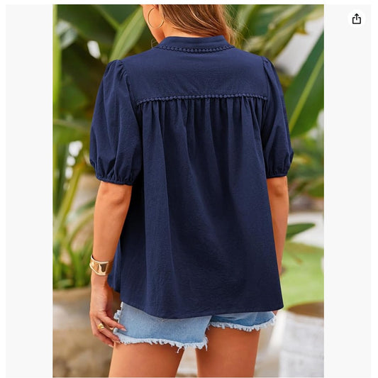 PrettyGarden women's summer button down shirt blue- Vintage looking, Hippie-chic