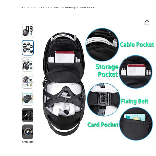 Black Sling Backpack For Meta Quest 3 2 Carrying Case Multi-function Fashion